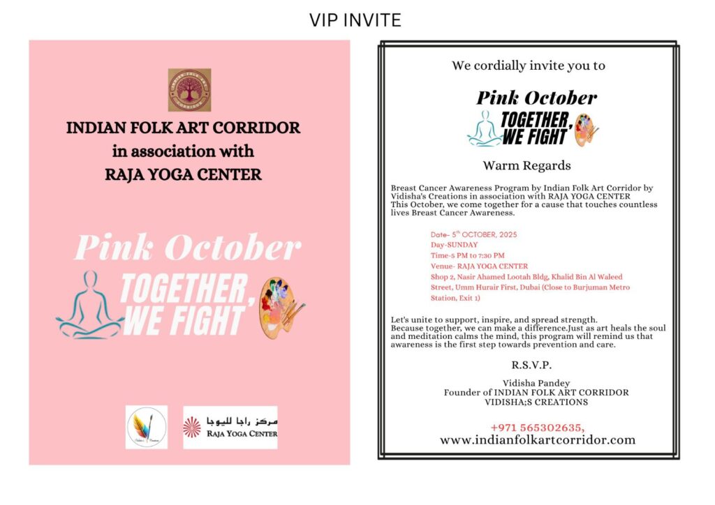 The Indian Folk Art Corridor by Vidisha’s Creations, in association with Raja Yoga Center, is proud to present a unique Breast Cancer Awareness Program.