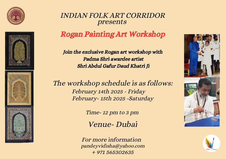 Happy to announce that in the new year, Indian Folk Art Corridor by vidisha’s Creations is bringing an exclusive Rogan art workshop for you with the master of masters, Padma Shri awardee Shri Abdul Gafur Ji![]()