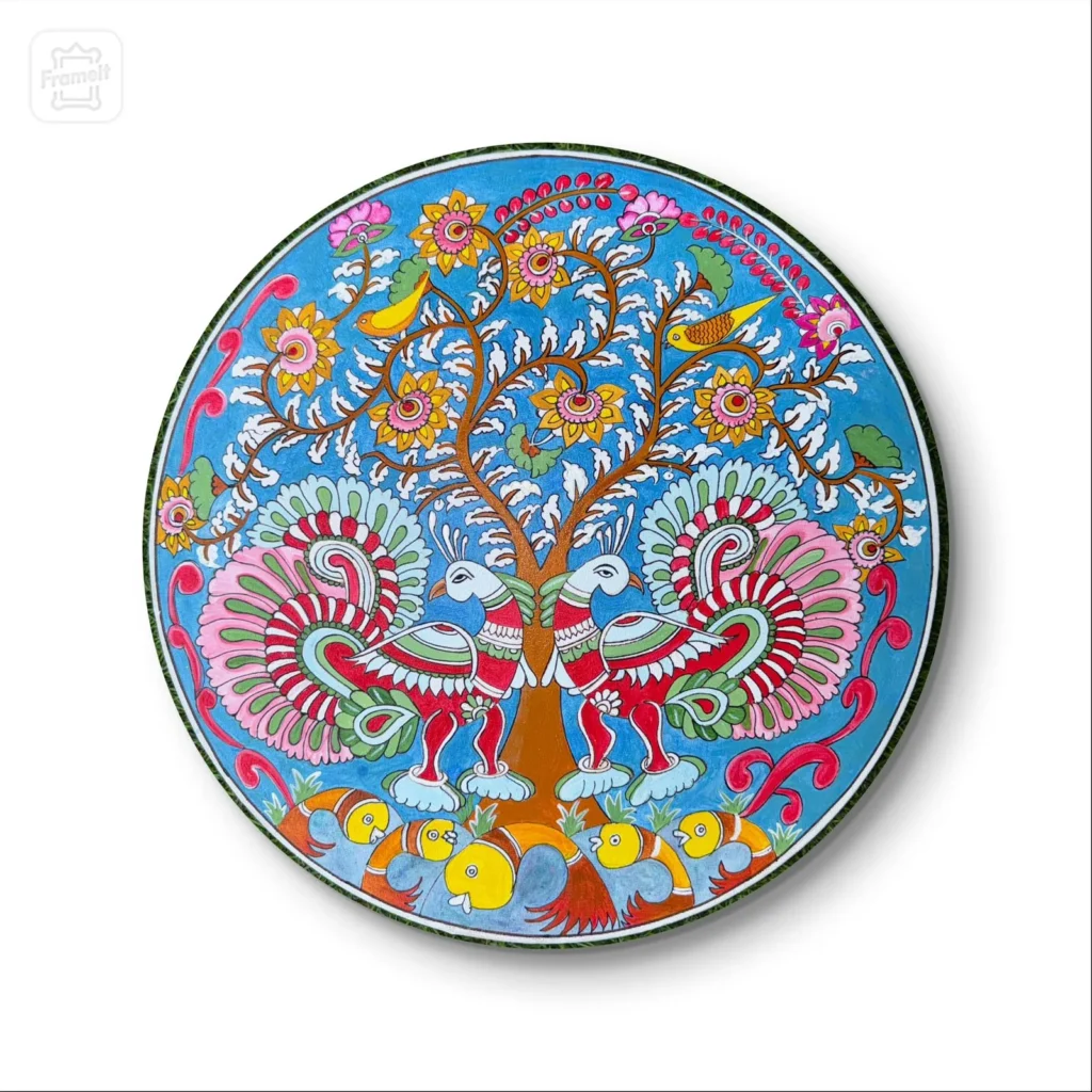 The “Cheriyal Art” painting brings to life the vibrant and detailed scroll painting tradition of Telangana. Known for its narrative style, this artwork captures folk tales and mythological stories with bold colors and expressive figures.