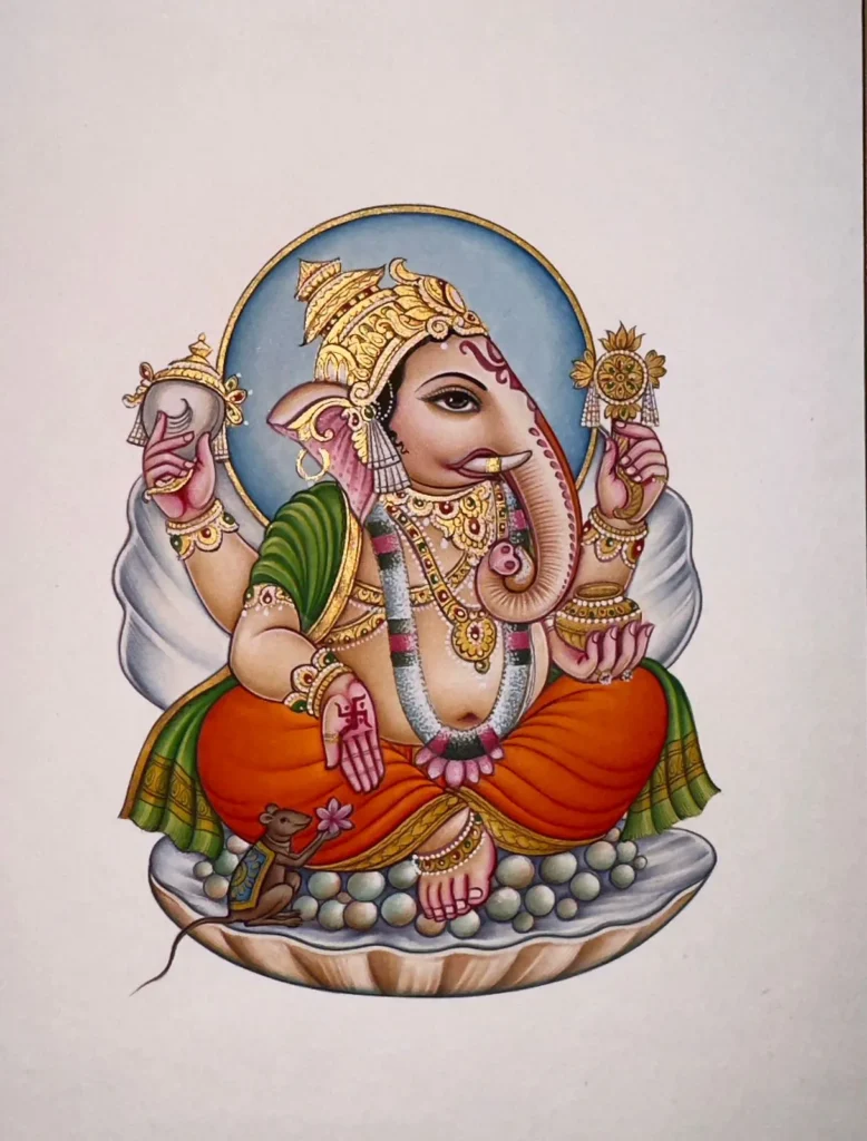 The “Serene Blessings” Miniature Lord Ganesh Painting captures the calm and peaceful essence of Lord Ganesha. With soft tones and delicate details, this artwork radiates divine tranquility, perfect for invoking blessings in your home.