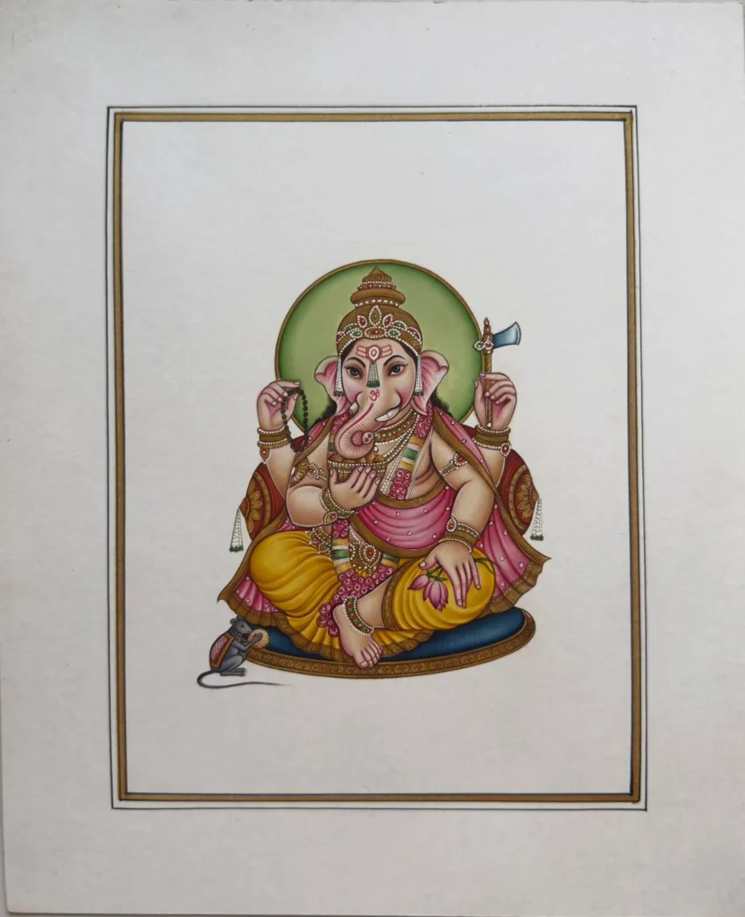 The “Traditional Style” Miniature Lord Ganesh Painting stays true to classic depictions of the deity, with detailed ornamentation and a traditional color palette. This timeless piece adds cultural depth and spiritual meaning to your surroundings.