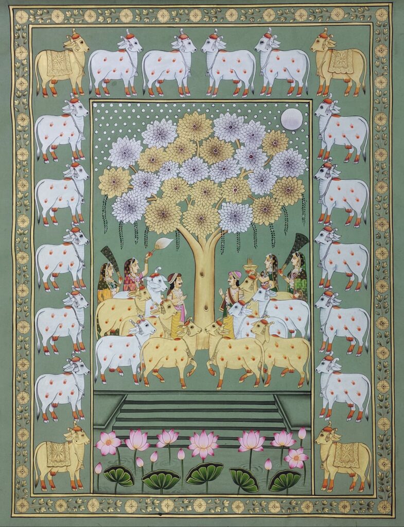 Symbolizing growth, fertility, and eternal life, the Tree of Life is central to many cultures, and in Pichwai, it takes on divine meaning — often associated with Lord Krishna and the eternal rhythm of nature. The intricate branches, blooming lotuses, and balanced composition speak to the harmony between man, nature, and the divine.