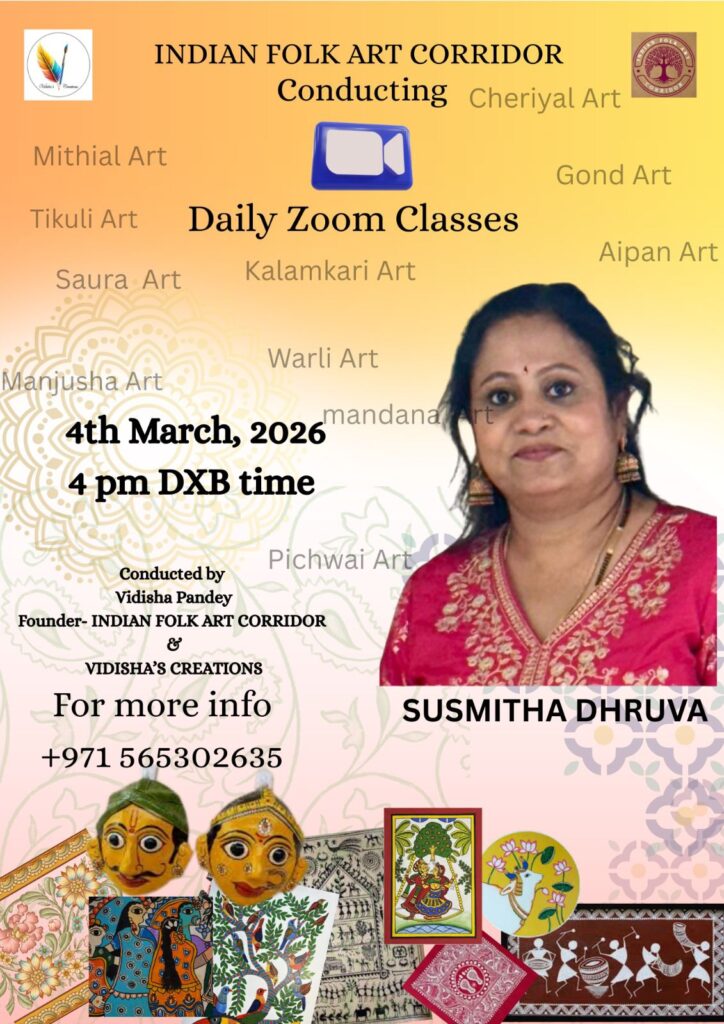 The Indian Folk Art Corridor by Vidisha Pandey is organizing a special online art session to celebrate one of South India’s most beautiful traditional art forms. On 4th March 2026, participants will get the opportunity to learn Kolam Art, guided by artist Susmitha Dhruva from SusDhruu Arts.